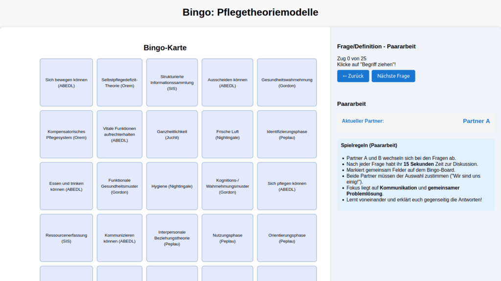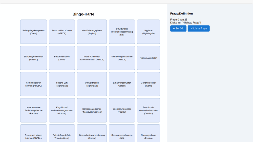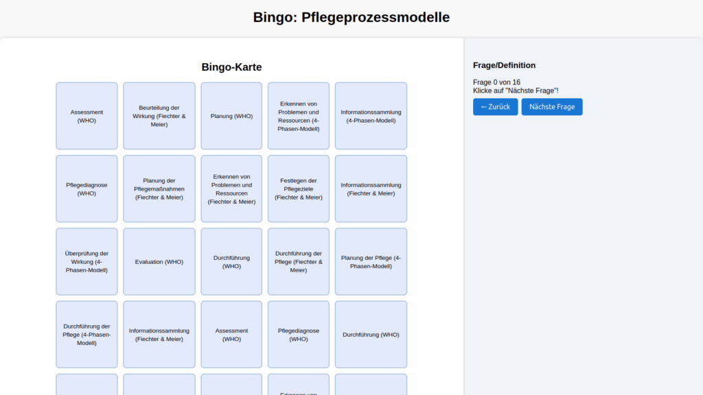 Sie erhalten folgende Lernspiele: Bingo Pflegeprozessmodelle, Bingo Pflegetheorien, Quiz Prophylaxen