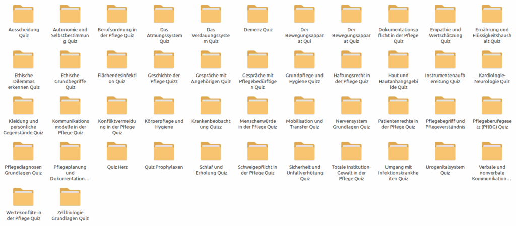 Lern Quize komplet für das 1. Ausbildungsjahr zur generalistischen Pflegefachperson