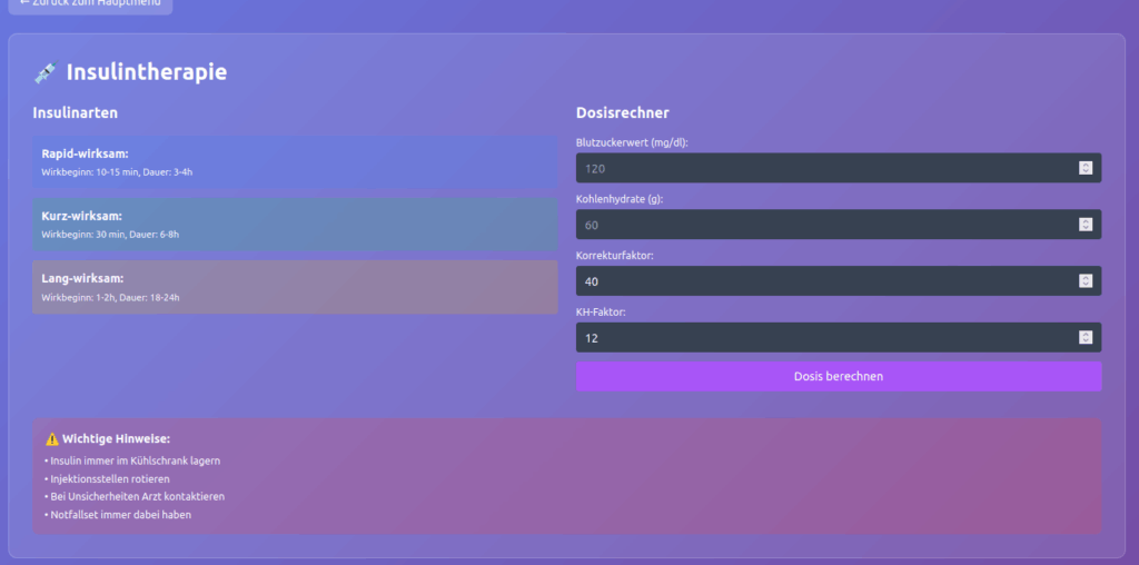 Besonders wertvoll für die Praxis: Notfallmanagement-Modul mit konkreten Handlungsanweisungen für Hypoglykämie und Hyperglykämie, inklusive Symptomerkennung und Sofortmaßnahmen. Alle Tools sind offline nutzbar und für den direkten Einsatz in Schulungen optimiert.